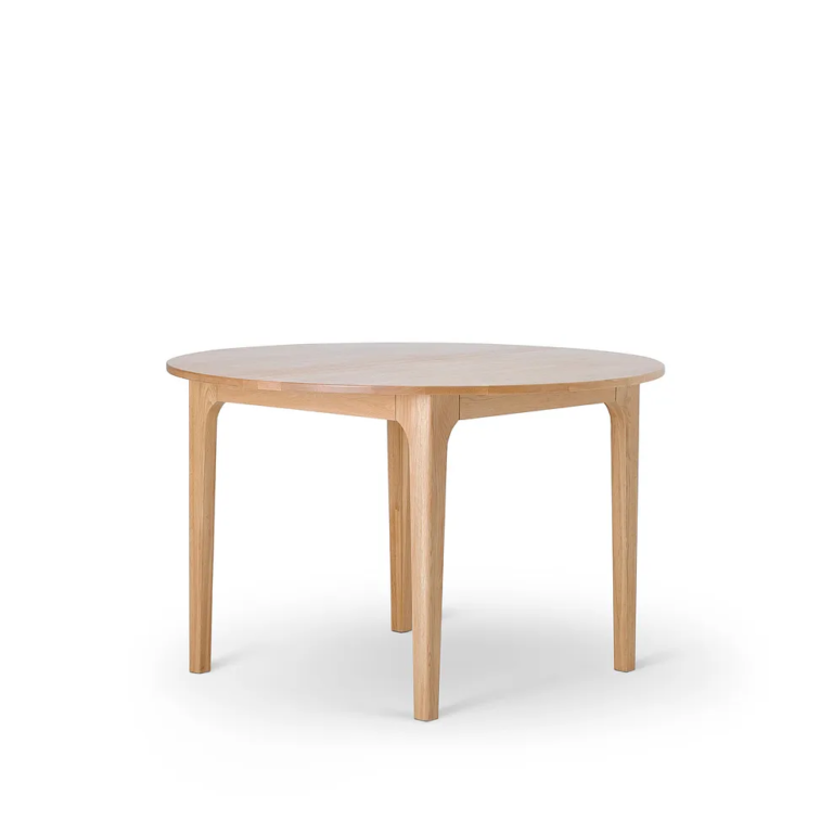 Oak Furnitureland Durham Natural Oak Round Dining Table 120cm + 4 Zola Chairs in Conway Stone Fabric with Oak leg