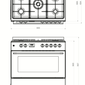 The Ferre F9S60GF-IN 90cm Gas Range Cooker combines robust cooking power with flexible performance, making it ideal for busy kitchens