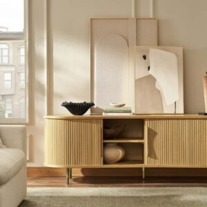 The Castlery TV Stand is a sleek and functional media unit designed to organise your entertainment area with style. Its
