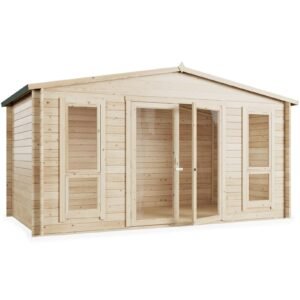 The BillyOh 14 × 8 Log Cabin is a large and versatile outdoor building designed to serve a wide range