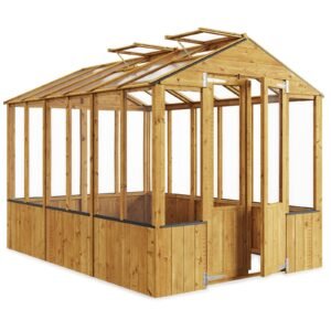 The BillyOh Wooden Clear Wall Greenhouse with Opening Roof Vent is a well-crafted gardening structure designed to support plant growth