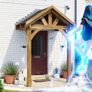 The Dunster House Wooden Porch Canopy Kit is a sturdy and attractive door shelter designed to protect entrances from rain