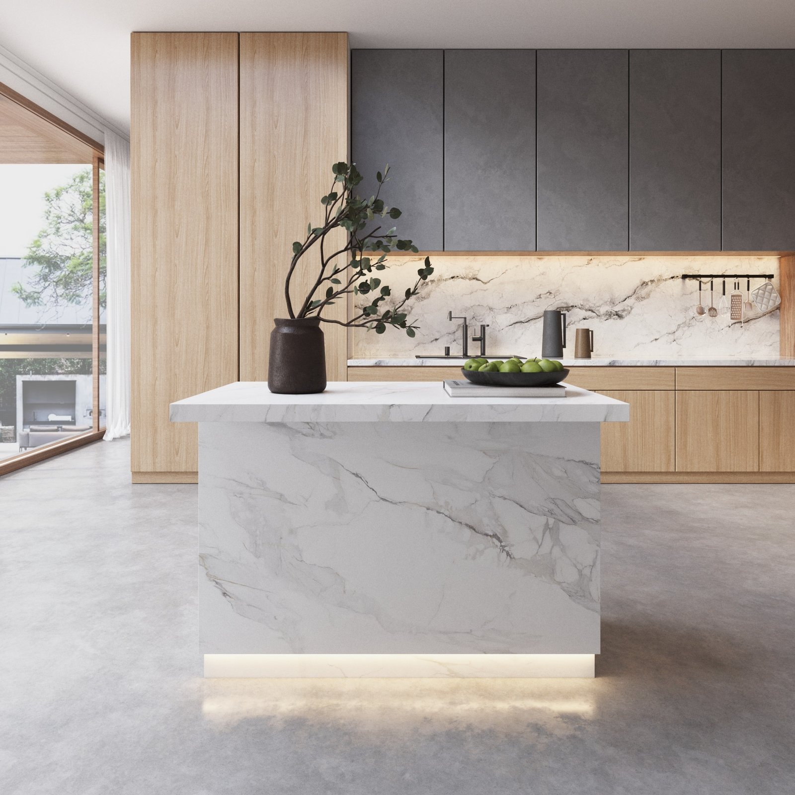 1270mm Japandi Kitchen lsland Wooden Storage Kitchen Cabinet with Light