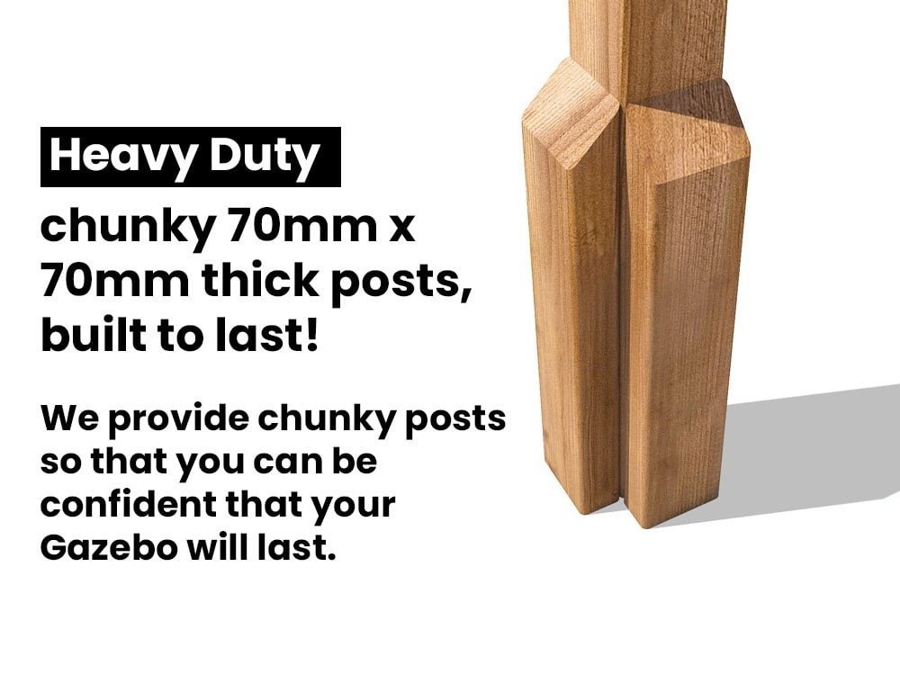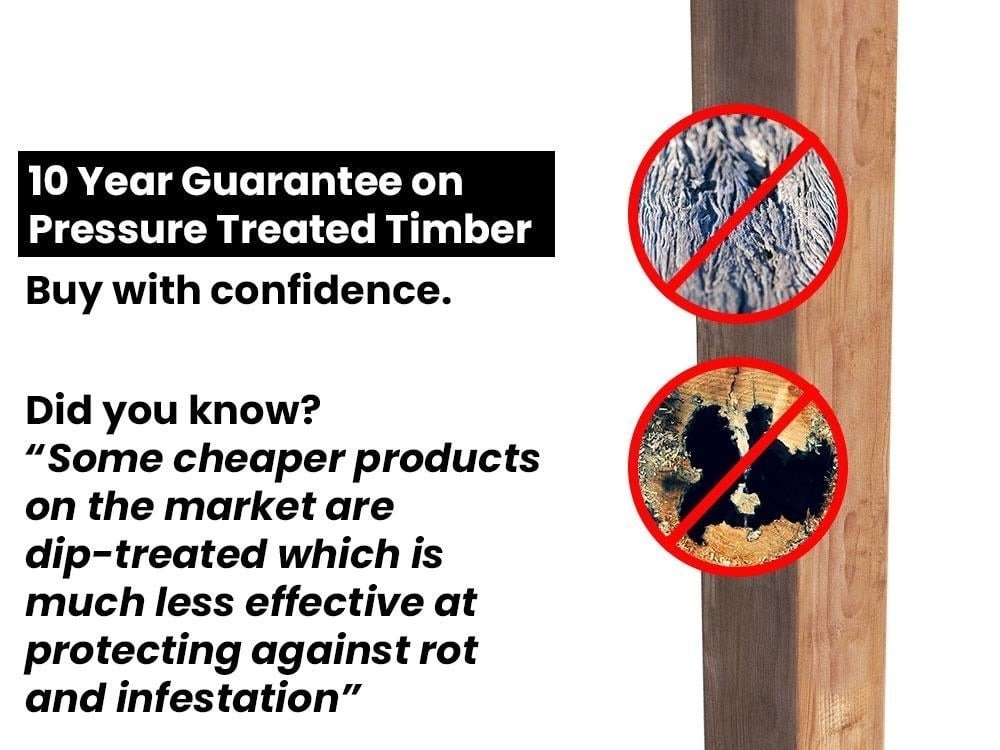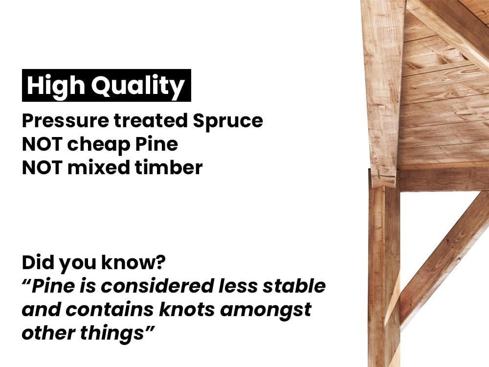 Built with strong, heavy-duty 70mm timber posts and crafted from 100% slow-grown Spruce. Each part of the structure is fully pressure treated for long-term durability. That’s why we confidently include a 10-year guarantee on all pressure treated timber, protecting against rot and insect damage.