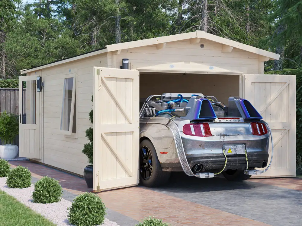 The Dunster House Wooden Garage is a strong and practical log garage designed to provide secure vehicle storage while also functioning as a versatile workshop or hobby space. With its traditional log cabin appearance and solid timber construction, it is ideal for gardens, driveways, or properties requiring a durable and attractive outdoor structure.