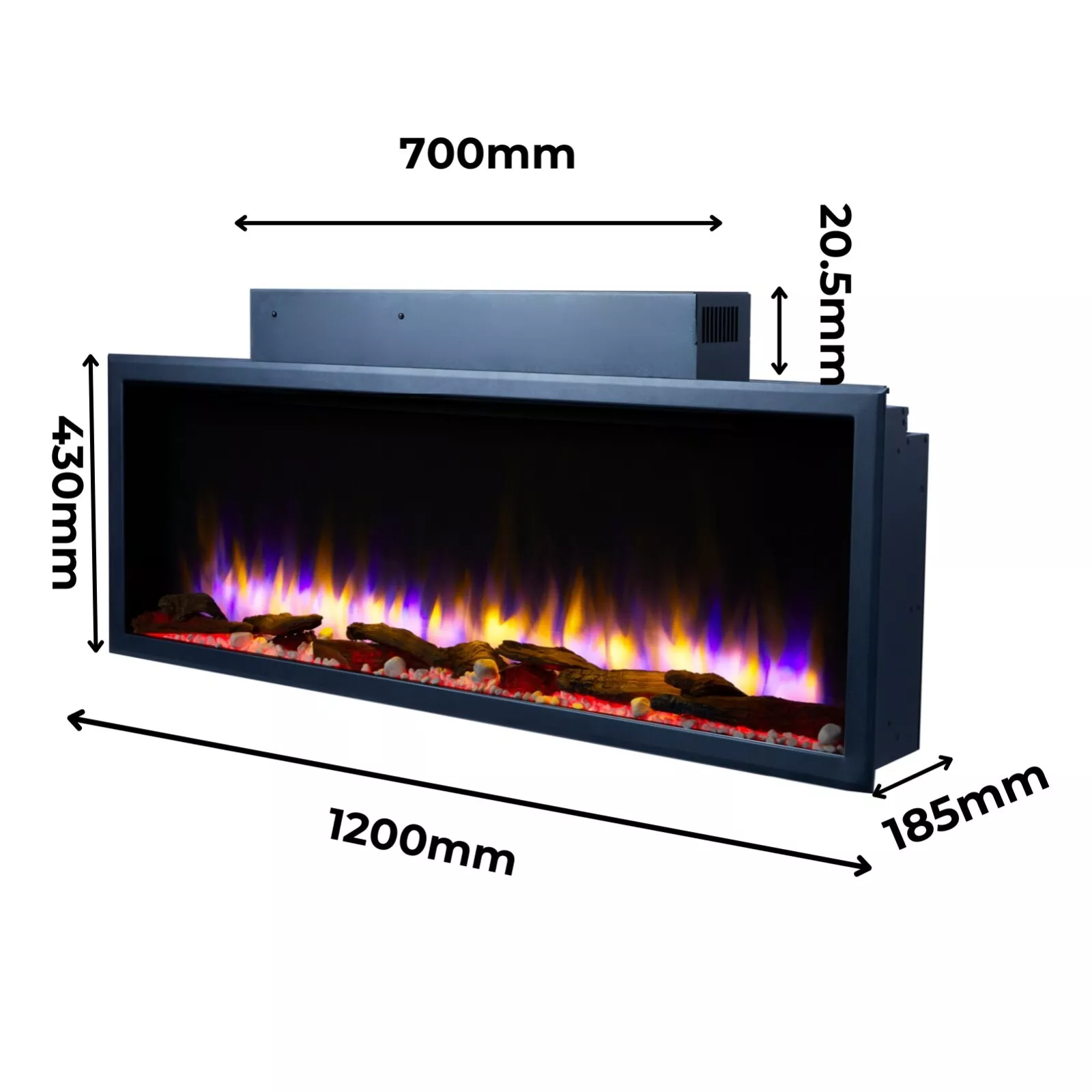Endeavour Fires Media Wall Inset Electric Fire 3D Fuel Bed & LED Flames