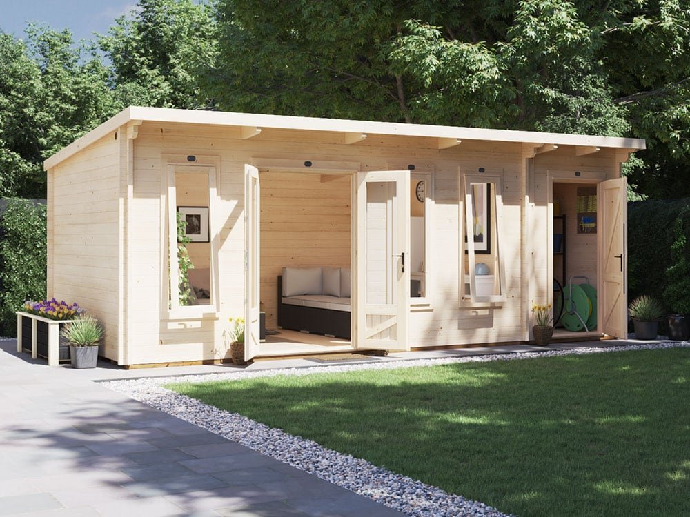 Log Cabin With Side Shed Storage W6.5m x D3m