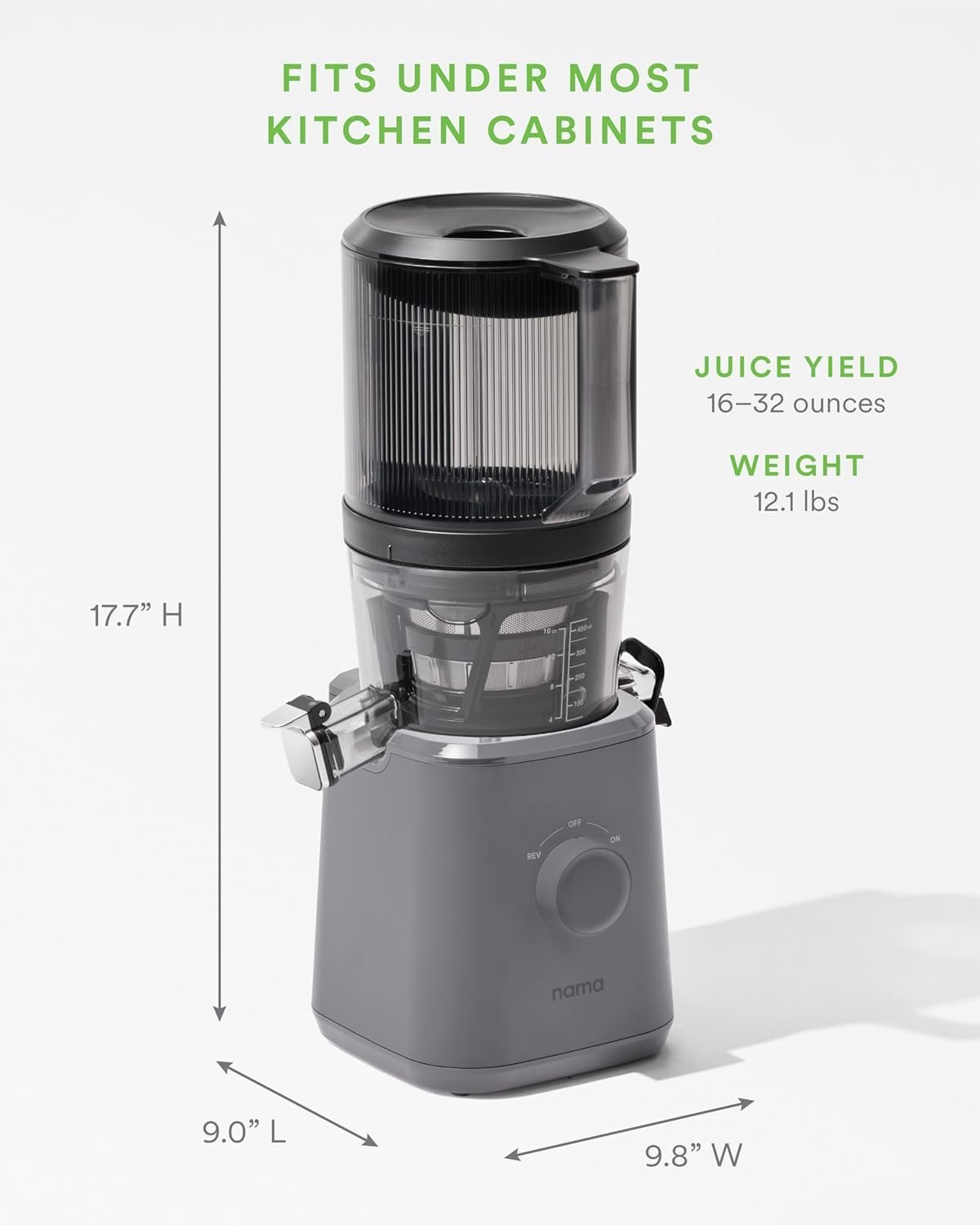 Elevate your health routine with our juice maker. Made to prioritize flavor and freshness, cold press technology ensures every juice is rich in flavor, smoother texture, and full of nutrients. Unlike traditional electric juicers, the J2 provides easy-to-make juice with its hands-free and self-powered design, freeing up your time to focus on what matters most. This innovative cold-pressed juicer machine supports your wellness goals by delivering nutrient dense juice ideal for digestion, detoxification and energy boosting. Designed with durability in mind, the Nama J2 offers components designed for easy cleaning and storage, ensuring hassle-free maintenance. By extracting up to 60% more juice from vegetables and 30% more fruits, the Nama J2 delivers exceptional value while reducing waste. Packaged with your convenience in mind, the included quick-seal containers keep your juice fresh and ready to use. Experience how the cold-pressed juicer machine can revolutionize your cooking routine by saving time, maximizing nutrient preservation, and delivering the quality and taste you expect from a fruit juicer machine.