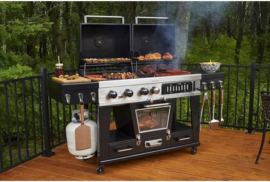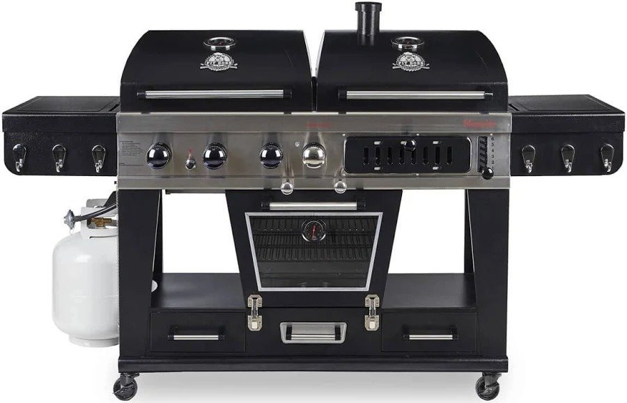 The Pit Boss PBMEMU1 Memphis Ultimate Combo Gas and Charcoal BBQ/Smoker makes the wildest barbecuing dreams come true.