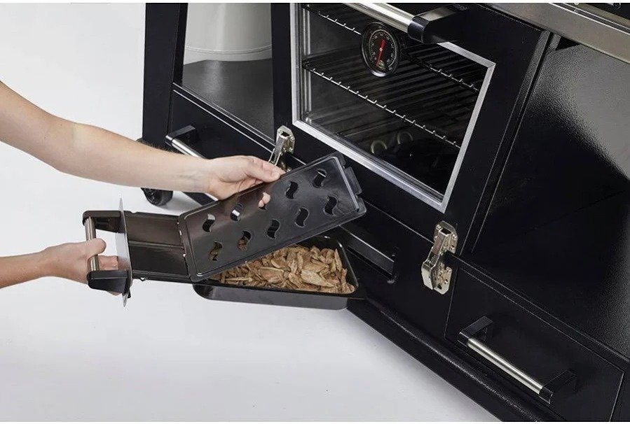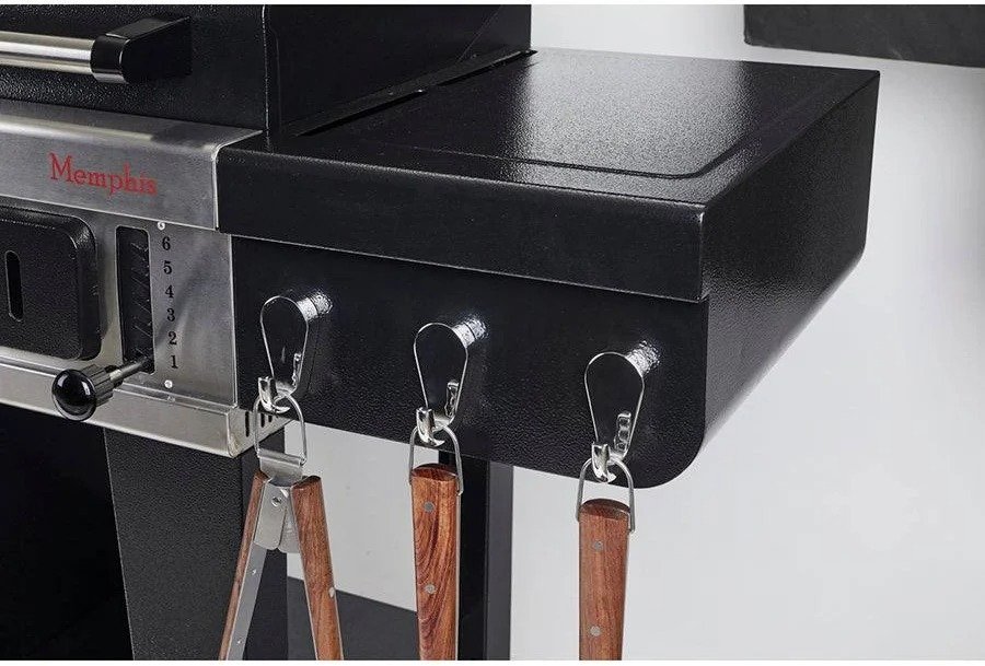 Grill your favourite meats on your charcoal grill, with a 6-position grade adjustment, front air intake and rear chimney exhaust. The ingenious engineering of the Memphis Ultimate allows you to offset the smoke from the smoker into either grill side, for a delicious added smoke flavor to anything you cook. If that weren’t enough, the Memphis Ultimate also comes equipped with 2 drawer storage, tool hooks, a side shelf for preparation, and locking caster wheels for mobility.