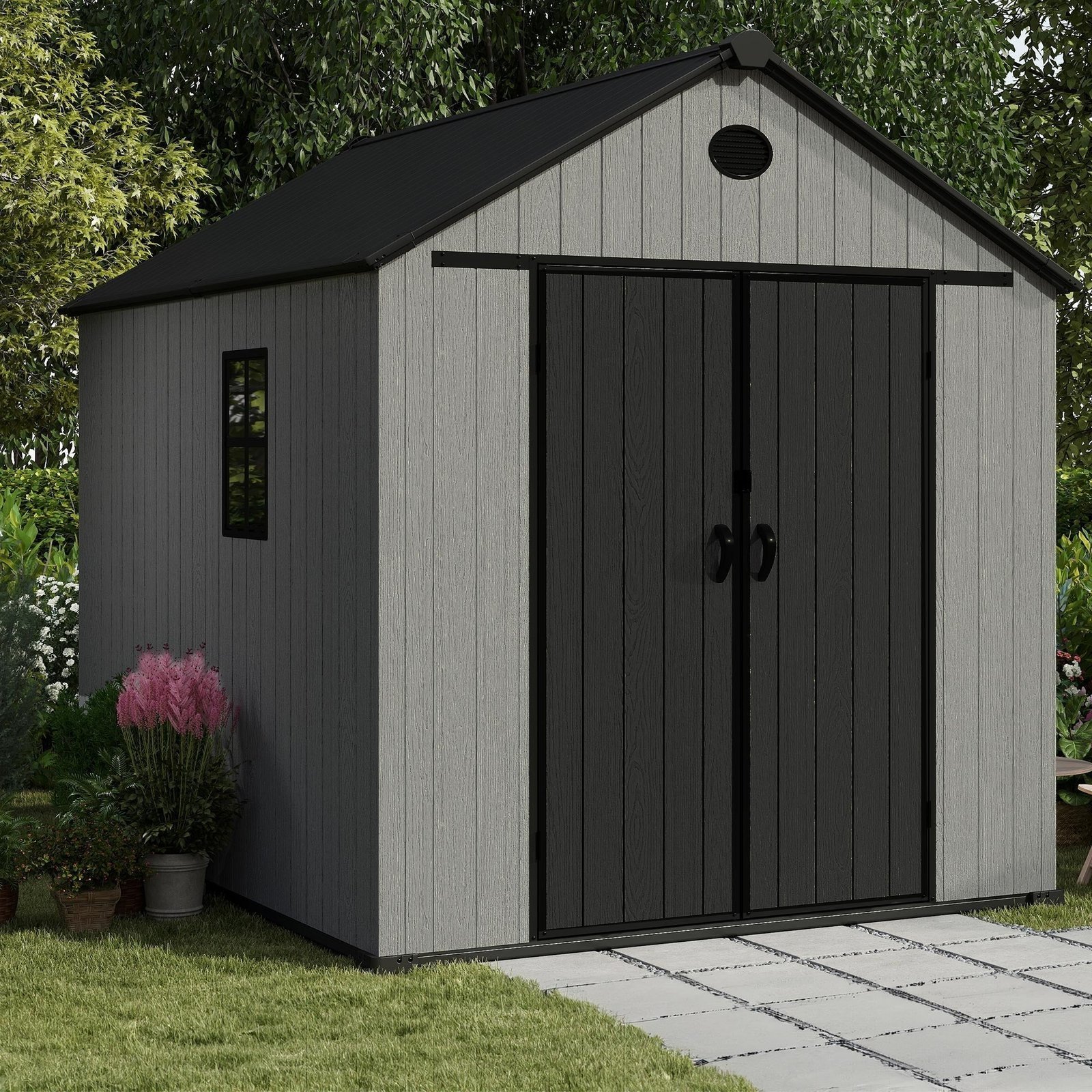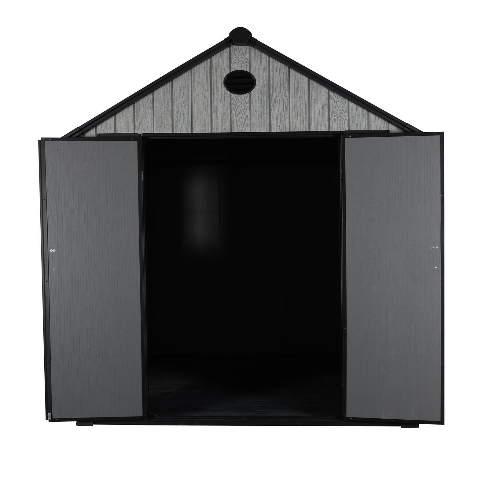 Pro Grade 6ft x 8ft Premium Plastic Double Door Garden Shed – Grey/Anthracite Wood Touch Texture