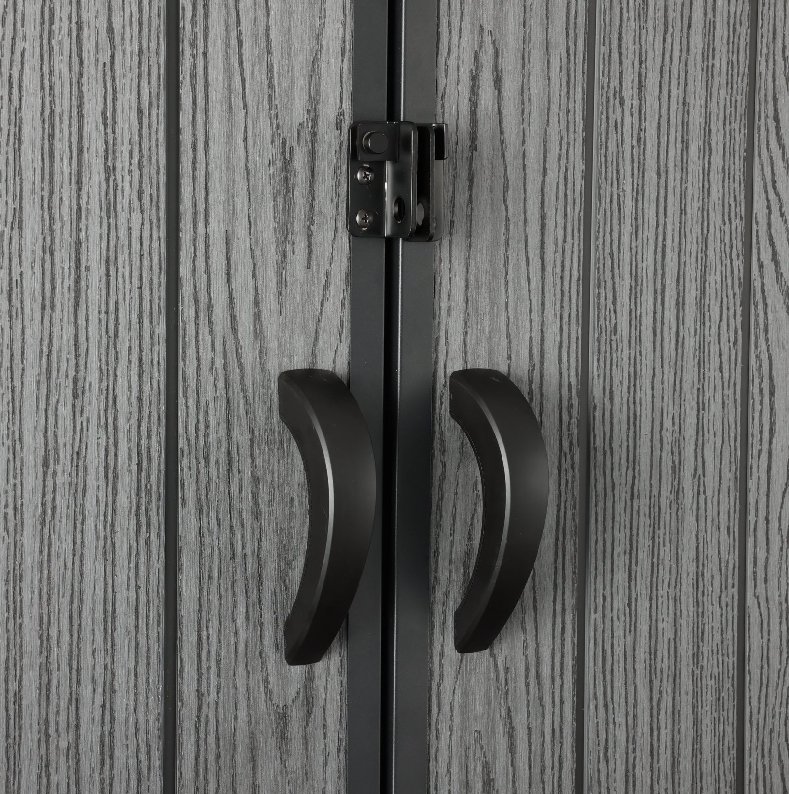 Finished in a contemporary Mid-Grey with contrasting Anthracite double doors & ‘Wood-Touch’ texture for that realistic wood like feel, this garden shed offers a sturdy solution with zero maintenance required!
