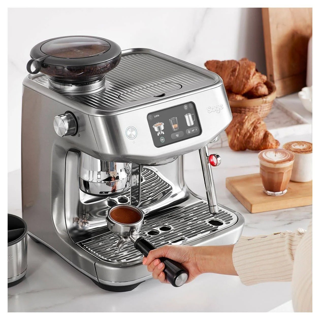 Sage espresso machines incorporate the 4 keys formula used by professional café machines. Designed to use the right dose of freshly ground beans, ensure precise temperature control, optimal water pressure and create true microfoam milk essential for latte art. You’re only a touch away.