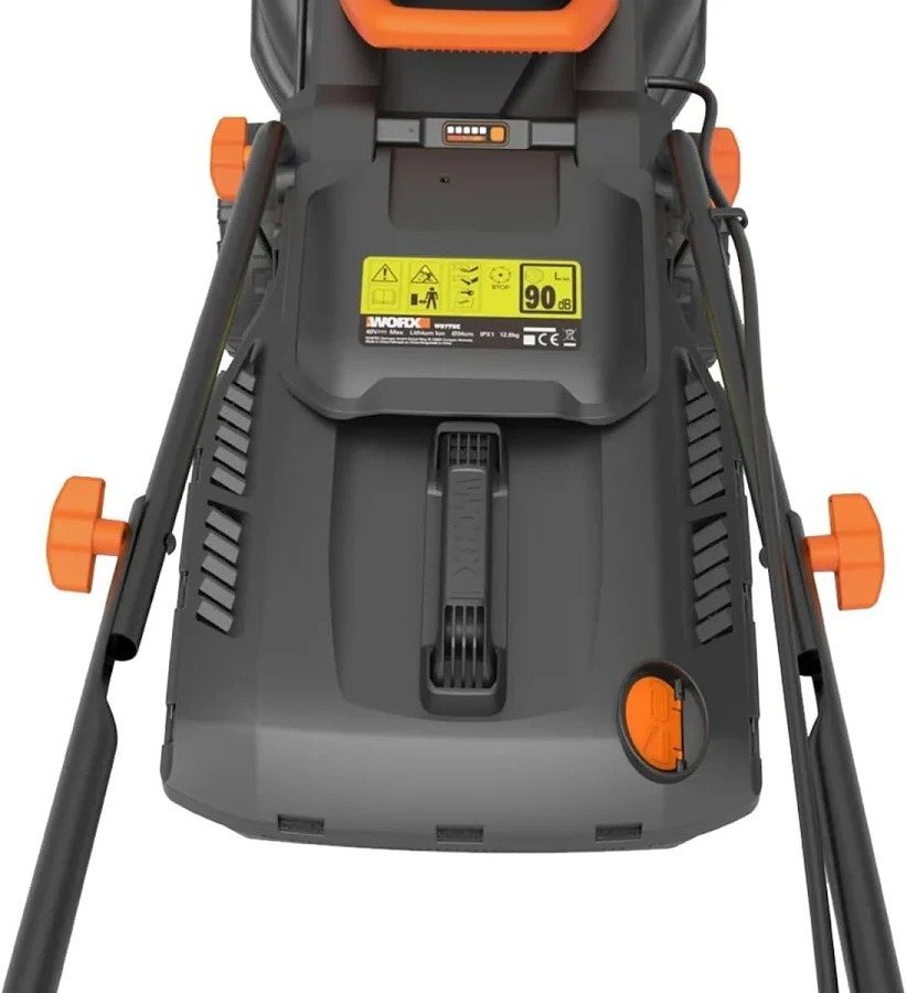 Powered by 2 x 20V 2.0Ah batteries (40V power), to provide twice the run-time. Features IntelliCut technology so that the mower automatically adjusts cutting performance based on the condition of the grass, ensuring a consistent and even cut. Easy adjustment lever allows the user to pick from 6 x cutting heights (20 to 70mm). ‘Cut-to-Edge’ design gets close to fences and landmarks to help minimise the need for strimming. Foldable handle for easy storage. Part of the Worx PowerShare Battery Platform enabling batteries to run across multiple cordless Worx tools for increased flexibility, agile handling and manoeuvrability.